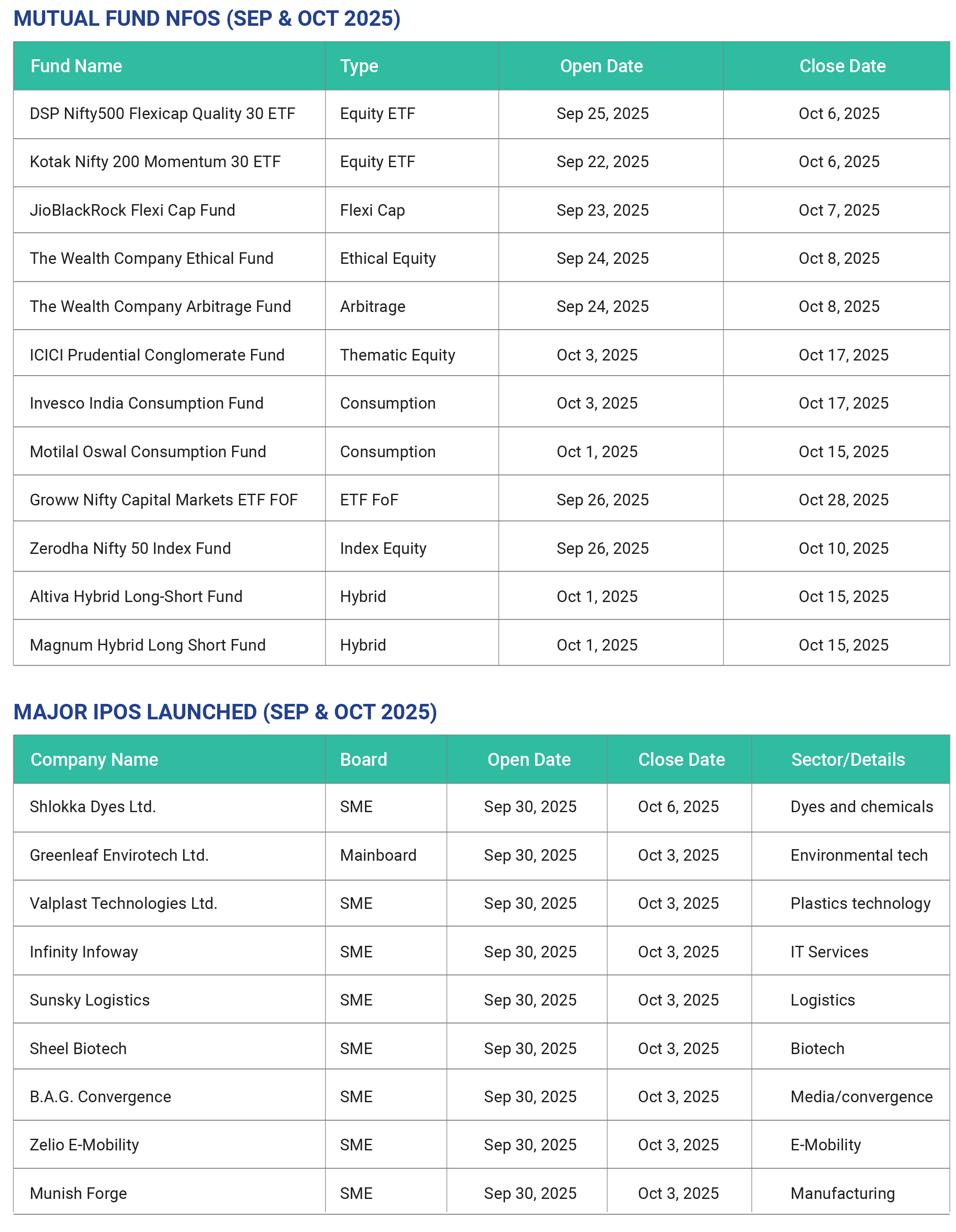 September 2025 marked a defining period for the global cryptocurrency landscape, characterized by accelerating regulatory clarity, deepening institutional adoption, and expanding blockchain innovation—even as most digital assets, apart from Bitcoin, experienced cooling prices after earlier rallies. Bitcoin defied historical trends by maintaining relative stability with a modest 5% gain, a sharp contrast to the typical bearish behaviour observed in September, when it has averaged a 3.7% decline since 2013. This resilience reflected a fundamental shift in the market narrative—from speculative, retail-driven trading to sustainable, regulation-backed growth and institutional participation. For over a decade, September has carried a reputation for weakness in crypto markets, but 2025 proved different. The passage of the Digital Asset Market Clarity Act (CLARITY Act) in the U.S. House of Representatives—awaiting Senate approval—marked a turning point in the regulatory evolution of digital assets. The legislation categorized cryptocurrencies into three distinct groups: commodities, securities, and stablecoins. This framework effectively ended the long-standing jurisdictional conflict between the Securities and Exchange Commission (SEC) and the Commodity Futures Trading Commission (CFTC), bringing long-sought legal certainty to the market. The result was a surge in stablecoin custody solutions, cross-border blockchain settlement systems, and growing institutional confidence in treating Bitcoin as a legitimate portfolio allocation within diversified investment strategies. The GENIUS Act, signed into law in July 2025, complemented this progress by establishing nationwide standards for stablecoin transparency, collateralization, and reporting. Together, these reforms signalled the U.S. government’s shift away from “regulation by enforcement” toward a cooperative model that fosters innovation while safeguarding investors. The SEC and CFTC jointly introduced new frameworks allowing national exchanges to list and trade spot crypto products and launched consultations to modernize rules on custody, margin, and derivatives. Collectively, these efforts positioned the U.S. as a global regulatory leader, setting the tone for responsible digital asset integration into mainstream finance. Institutional adoption reflected this newfound confidence. Exchange-Traded Funds (ETFs) became a central channel for regulated exposure to crypto markets. In 2025 alone, ETF inflows reached a record $29.4 billion, with BlackRock’s IBIT leading the surge. ETFs now account for nearly one-quarter of global Bitcoin trading volume, acting as liquidity anchors that dampen volatility and reduce dependence on speculative retail flows. This structural stability further legitimized Bitcoin as a strategic asset class and paved the way for broader institutional participation in digital finance. Beyond regulation and ETFs, innovation across blockchain ecosystems remained vibrant. Perpetual decentralized exchanges (Perp DEXs) such as Aster and Hyperliquid posted record trading volumes, generating nearly one-third of blockchain fee revenue for the month. Meanwhile, tokenization of real-world assets (RWAs)—including real estate, commodities, and bonds—gained traction on platforms like Avalanche, Hedera, and Stellar, underscoring blockchain’s shift from speculative experimentation to tangible enterprise applications. Even within a cooling market, the presale success of BullZilla ($BZIL), a meme coin, highlighted the continued social and community-driven enthusiasm that defines crypto culture. Overall, September 2025 was more than a month of regulatory milestones—it represented the maturation of the digital asset ecosystem. The developments of the month firmly positioned digital assets as an evolving pillar of the modern financial system, signalling a new era where blockchain and crypto coexist seamlessly with traditional finance. Complete list of NFOs (New Fund Offers) and IPOs (Initial Public Offerings) launched in India during September and October 2025